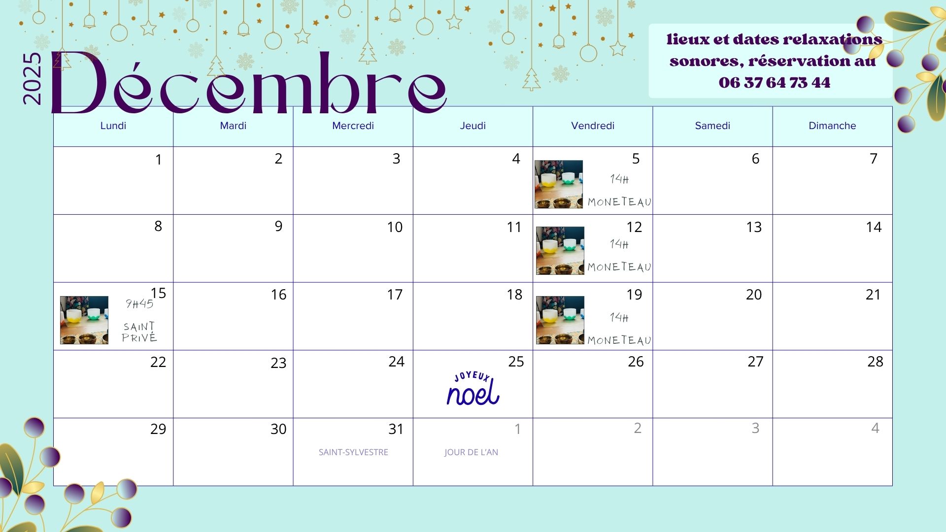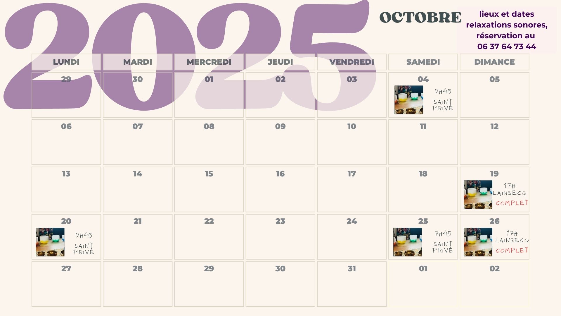 Après les massages sonores individuels, l’envie est née d’ouvrir ces espaces au groupe, à travers des séances de relaxation sonore collective, pour que chacun puisse vibrer à son rythme, dans une écoute partagée.