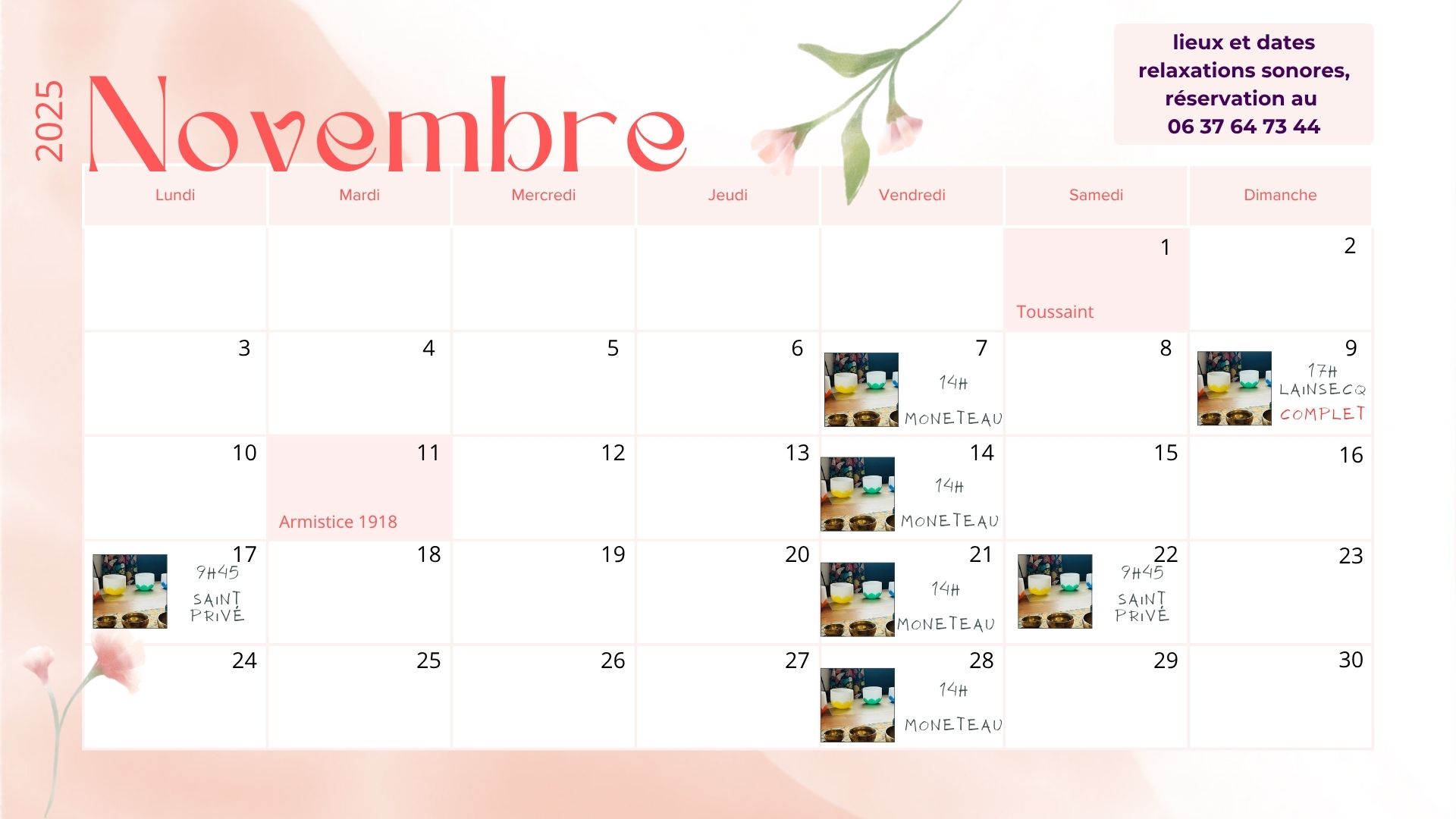 Lors de la séance, l’ensemble des vibrations émies par les bols entre en résonance avec tout votre corps, toutes vos cellules, parcourant vos méridiens pour vous unifier dans une intention d’Amour.